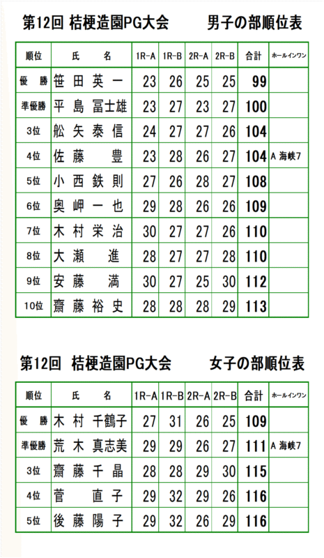 男性の部は10位まで、女性の部は5位までで、入賞者は、次のとおりです。
